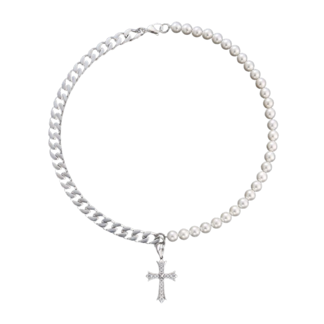 The Perla necklace is the epitome of sophisticated. The Cuban link pearl chain is adorned with a diamond cross pendant, making it the perfect necklace for a special night out. With is natural culture pearls, this necklace is perfect for any statement-making, fashion-forward individual. Whether you're dressing up for a night out or just accenting your everyday look, you will never go unseen.
